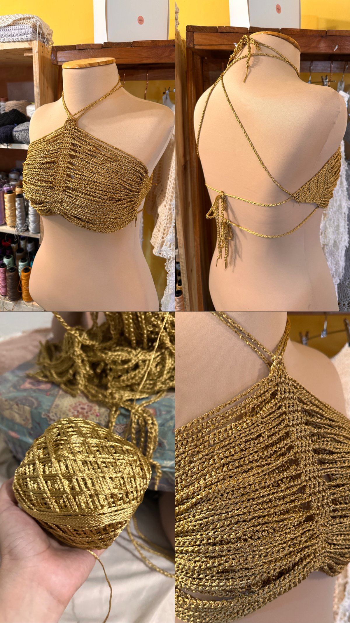 Tejida en algodón ajustable en el cuello y pecho color hueso.